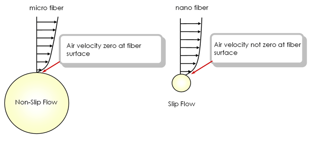 - Slip-Flow-Effect of nanofibers causes low pressure drop